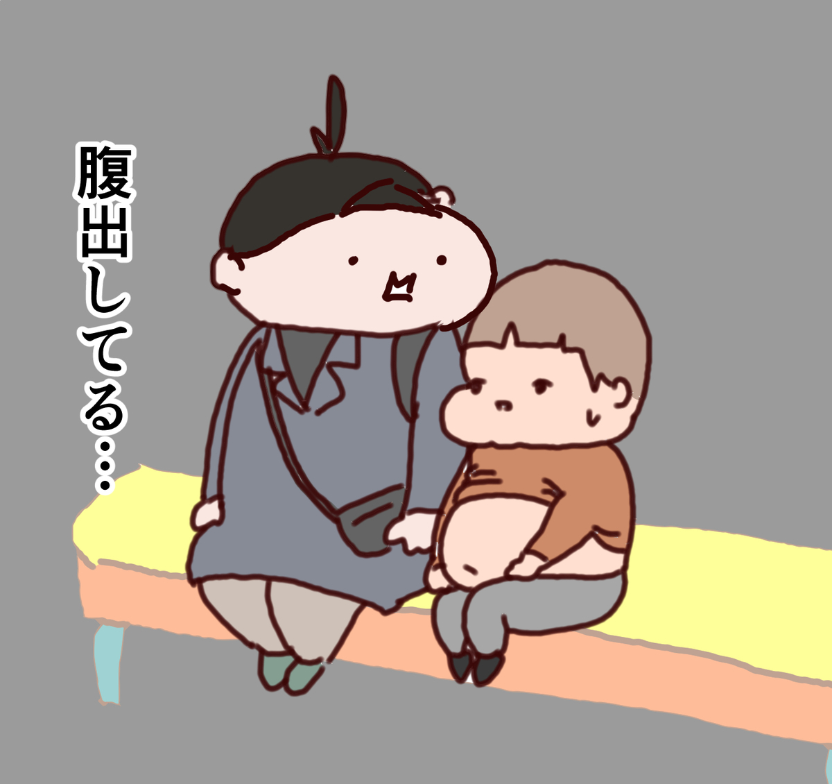 『まだ腹出さなくて大丈夫だよ。診察室入ったらお腹出そうね。』