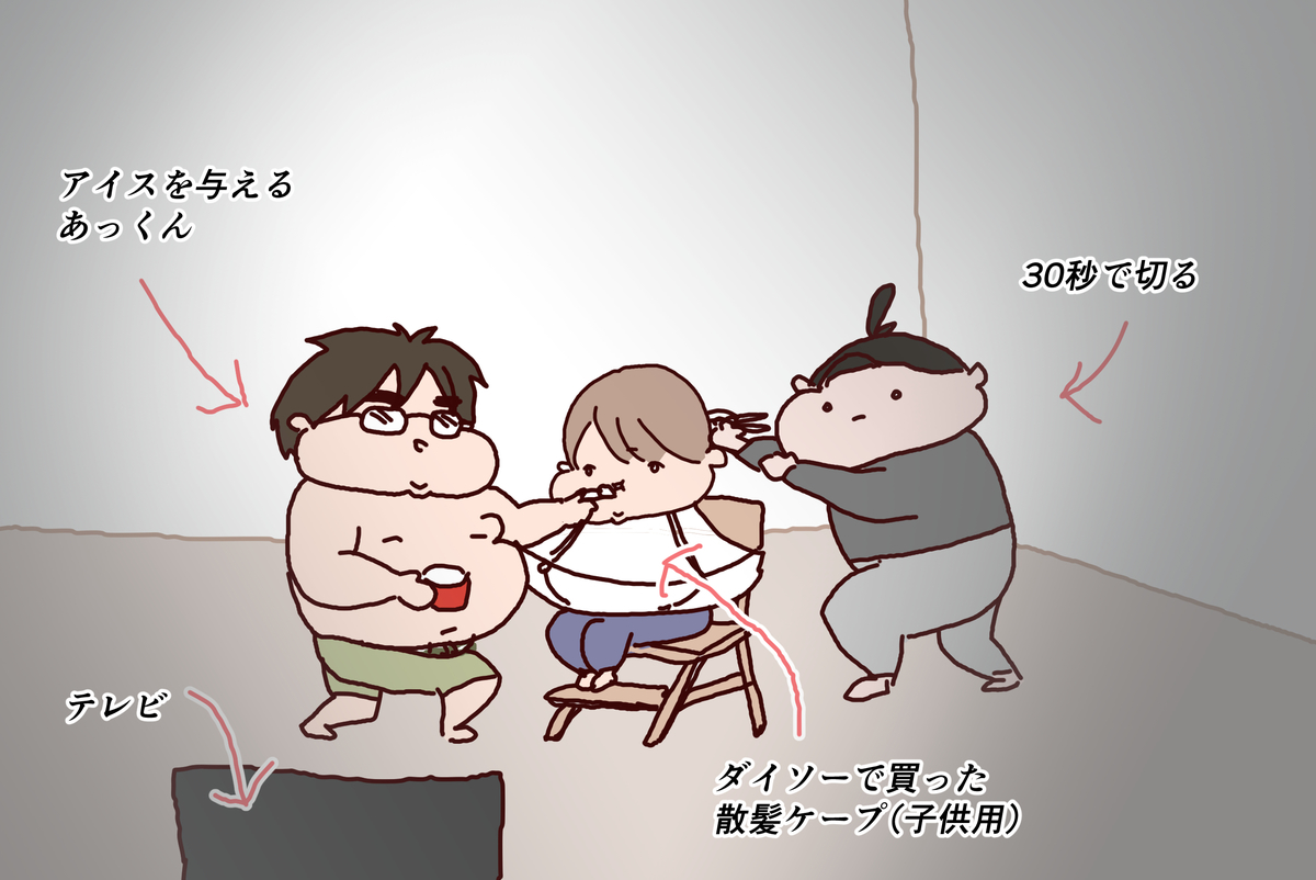 やっすーに拒否されたダイソーのケープは今あっくんが使っています