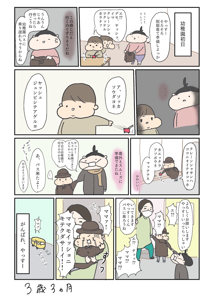 やっすー幼稚園登園初日の話です