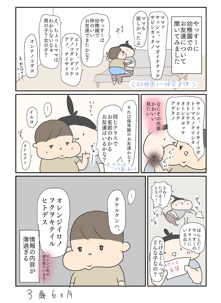 別の日、幼稚園から帰ってきて、やっすーにたけるくんとのことを聞いてみると