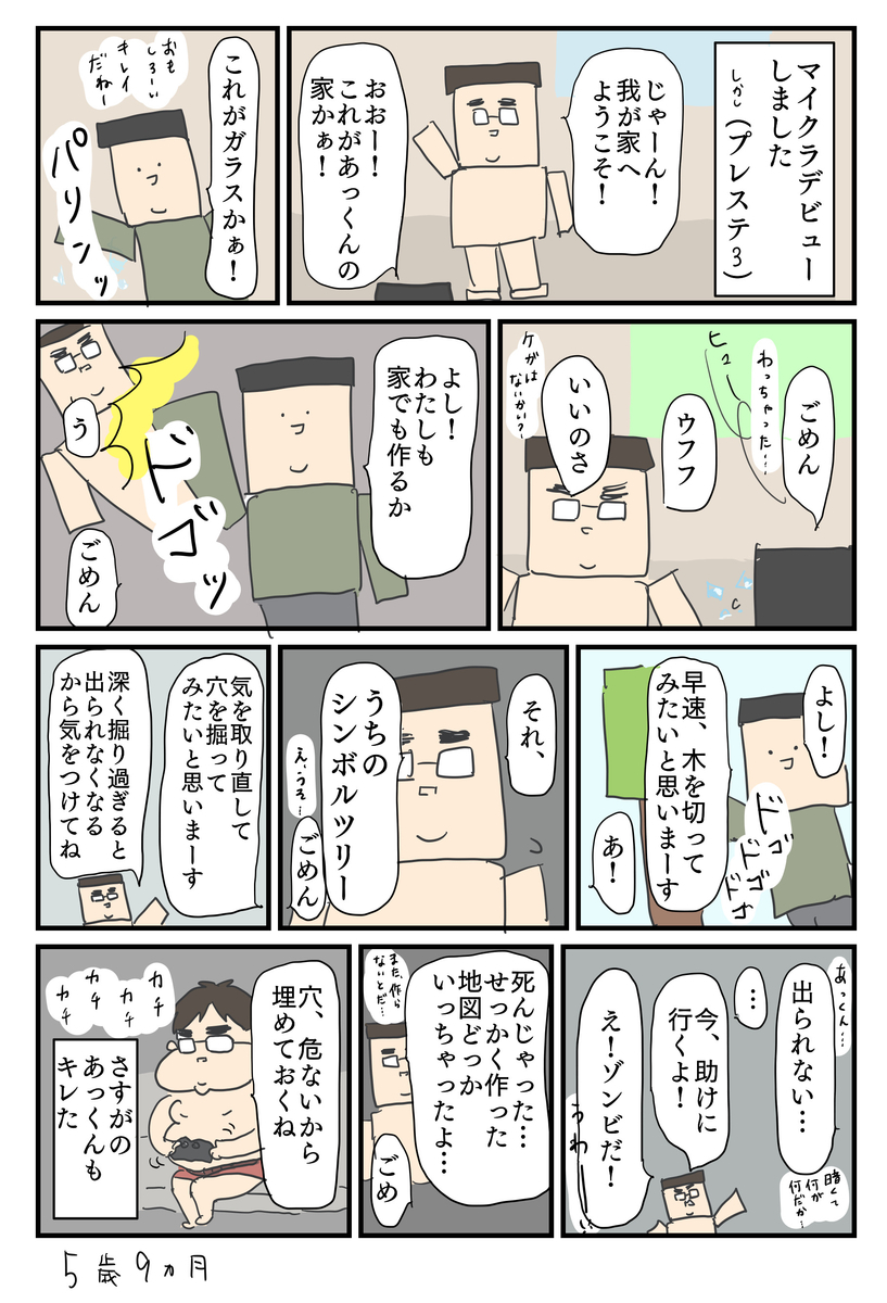 『やっしゅ、ゾンビやっつけるために。おとしあなつくるんだ!がんばんまでたどりつけるくらいふかいの!